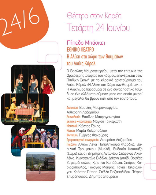 Στον Καρέα, στο γήπεδο μπάσκετ απόψε Τετάρτη 24 Ιουνίου με το Εθνικό Θέατρο και την Αλίκη στη χώρα των θαυμάτων