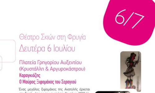 Το επόμενο ραντεβού μας με τις Γειτονιές Πολιτισμού είναι τη Δευτέρα 6 Ιουλίου στην πλατεία Γρηγορίου Αυξεντίου, με τον αγαπημένο μας Καραγκιόζη στο "Μαύρο Ξιφομάχο του Σεραγιού".Ένας μεγάλος ξιφομάχος από την Ανατολή έρχεται στο Σεράι. Όποιος τον σκοτώσει θα πάρει 2000 λίρες προίκα, τη Βεζιροπούλα για γυναίκα του και μετά το θάνατο του Βεζίρη θα πάρει και το αξίωμά του! Ποιος, όμως, θα πετύχει το δύσκολο αυτό κατόρθωμα;