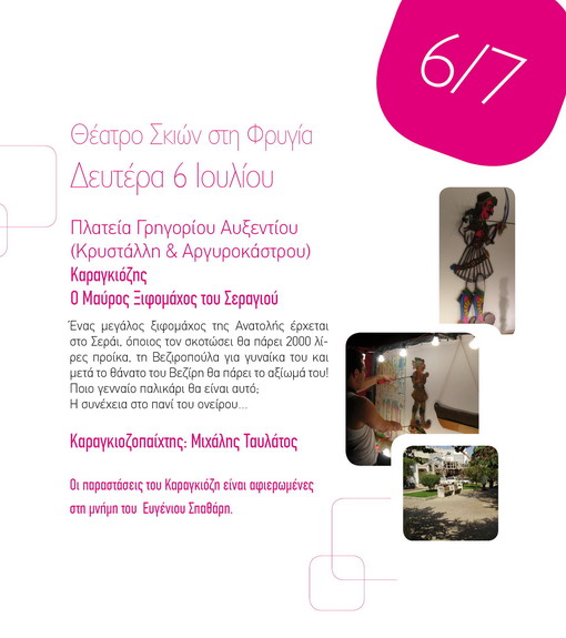Οι παραστάσεις του Καραγκιόζη είναι αφιερωμένες στη μνήμη του Ευγένιου Σπαθάρη.