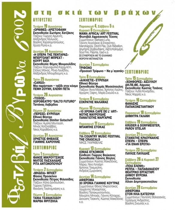 ΑΚΥΡΩΣΕΙΣ - ΦΕΣΤΙΒΑΛ ΒΥΡΩΝΑ 2009 ΣΤΗ ΣΚΙΑ ΤΩΝ ΒΡΑΧΩΝ