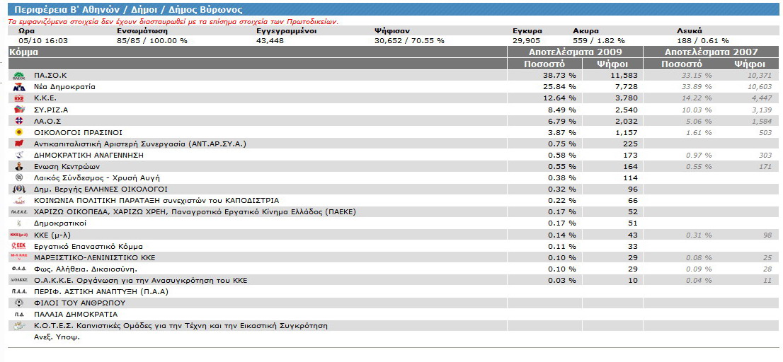 Για να δείτε τα αποτελέσματα των Βουλευτικών Εκλογών 2009 ανά εκλογικό τμήμα παρακαλώ πατήστε εδώ