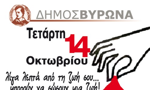 Λίγες σταγόνες από το αίμα μας μπορούν να σώσουν μια ζωή.Μ’ αυτή τη φράση ως γνώμονα, δεκάδες εθελοντές αιμοδότες βρέθηκαν το μεσημέρι της Τετάρτης 14 Οκτωβρίου 2009 στο χώρο των Δημοτικών Ιατρείων Βύρωνα.