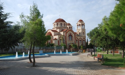 Ο πολυχώρος βρίσκεται έναντι του Ιερού Ναού Αγίου Γεωργίου.