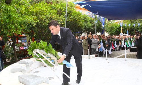 Ακολούθησε η επιμνημόσυνη δέηση στο Μνημείο της Εθνικής Αντίστασης, στην πλατεία Χρυσοστόμου Σμύρνης, η κατάθεση στεφάνων και η εκφώνηση του πανηγυρικού λόγου από τον Δήμαρχο Βύρωνα Νίκο Χαρδαλιά.