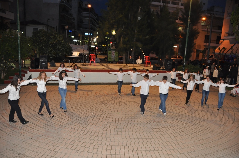 Οι μαθητές του 8ου Δημοτικού Σχολείου παρουσιάζουν δημοτικούς παραδοσιακούς χορούς από Θεσσαλία, Πόντο, Κρήτη και Μικρά Ασία.