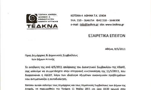 Ο Δήμος Βύρωνα συμμετέχει στις 11 Μαΐου στην απεργιακή κινητοποίηση της ΑΔΕΔΥ, ανταποκρινόμενος στο κάλεσμα της ΤΕΔΚΝΑ για εκτέλεση της από 4/5/2011 απόφασης του Διοικητικού Συμβουλίου της ΚΕΔΚΕ.