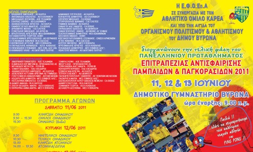 Πανελλήνιο Πρωτάθλημα Επιτραπέζιας Αντισφαίρισης Παμπαίδων-Παγκορασίδων 2011 - Δημοτικό Γυμναστήριο Βύρωνα