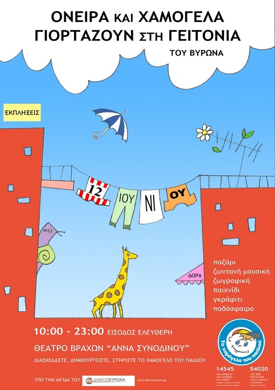 Μία ημέρα γιορτής για όλα τα παιδιά διοργανώνει την Κυριακή 12 Ιουνίου από τις 10 το πρωί μέχρι τις 11 το βράδυ, στο Θέατρο Βράχων "¶ννα Συνοδινού", το "Χαμόγελο του Παιδιού".