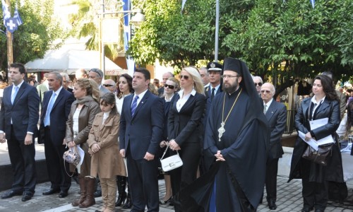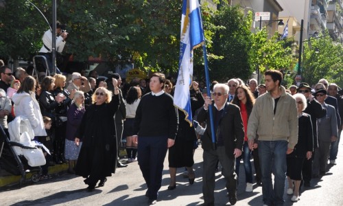 Ο Δήμαρχος έκλεισε την ομιλία του με ένα απόσπασμα από το επίκαιρο και πάντα διαχρονικό άρθρο του Γεωργίου Βλάχου με τίτλο “ΟΛΟΙ ΜΑΖΙ!”, που δημοσιεύτηκε στην "Καθημερινή" την 4η Νοεμβρίου 1940 και κάλεσε όλους «Να κρατήσουν ψηλά το κεφάλι! Μόνο ψηλά!».