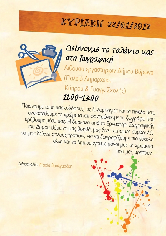 Δείχνουμε το ταλέντο μας στη ζωγραφική - 11:00 - Αίθουσα εργαστηρίων Δήμου Βύρωνα