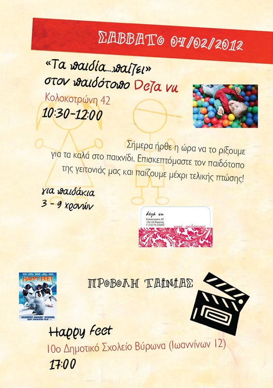 Προβολή ταινίας Happy feet - 17:00 - 10ο Δημοτικό Σχολείο Βύρωνα