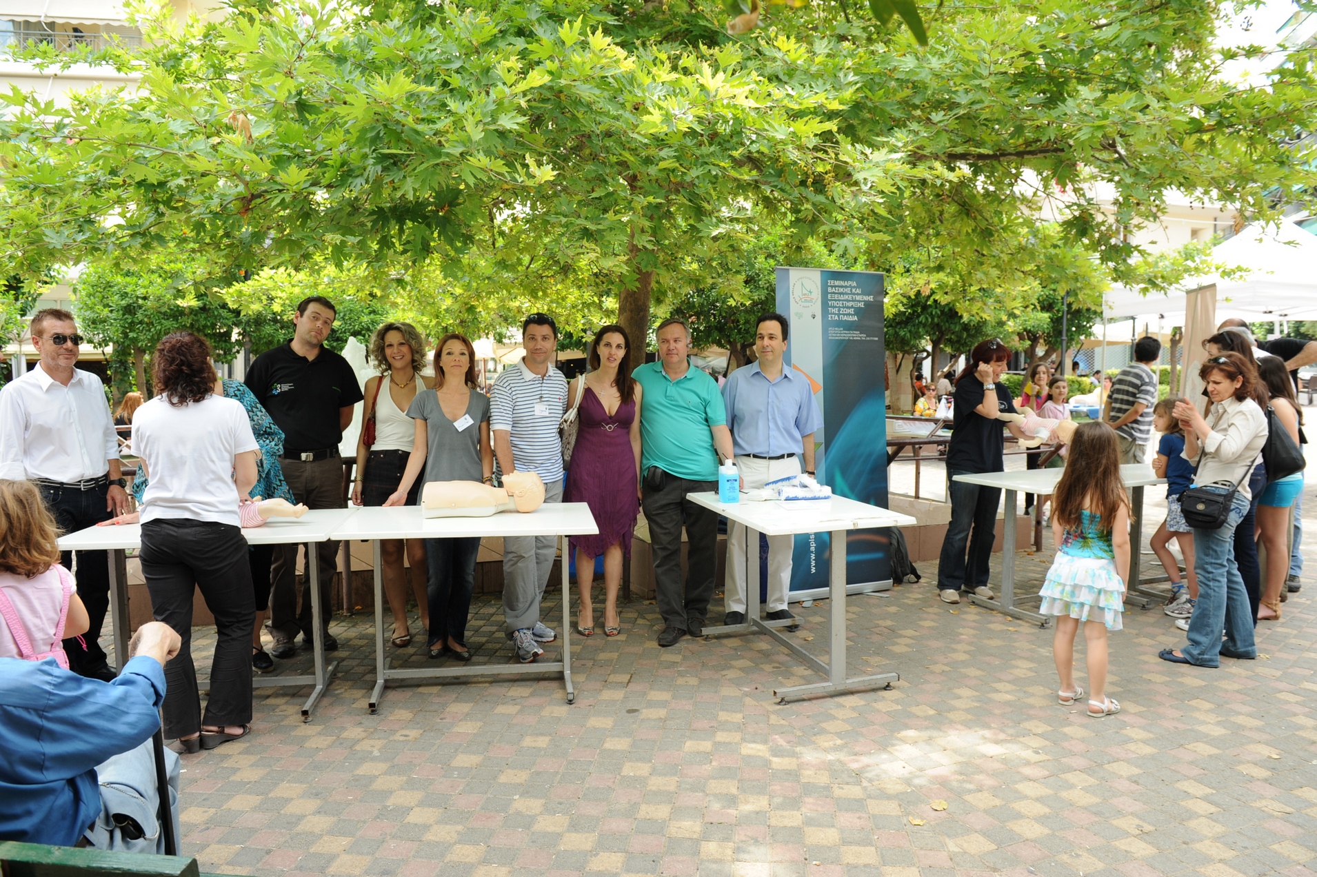 Στο πλαίσιο της Ημέρας Ανοιχτής Εκπαίδευσης στην Καρδιοπνευμονική Αναζωογόνηση, με τον τίτλο «Με την ψυχή στο στόμα. Με την καρδιά στα χέρια», οι πολίτες του Βύρωνα είχαν την ευκαιρία να εκπαιδευθούν και να λάβουν χρήσιμες πληροφορίες από σαράντα περίπου εθελοντές της Ε.Ε.E.Π.Φ και της APLS στη βασική υποστήριξη της ζωής και στην απινίδωση σε ενήλικες, καθώς και στην αντιμετώπιση της πνιγμονής σε βρέφη και παιδιά. Εκτός από τη θεωρητική κατάρτιση οι πολίτες έκαναν και πρακτική εξάσκηση χρησιμοποιώντας φουσκωτά προπλάσματα (ανθρώπινα προσομοιώματα – «κούκλες).