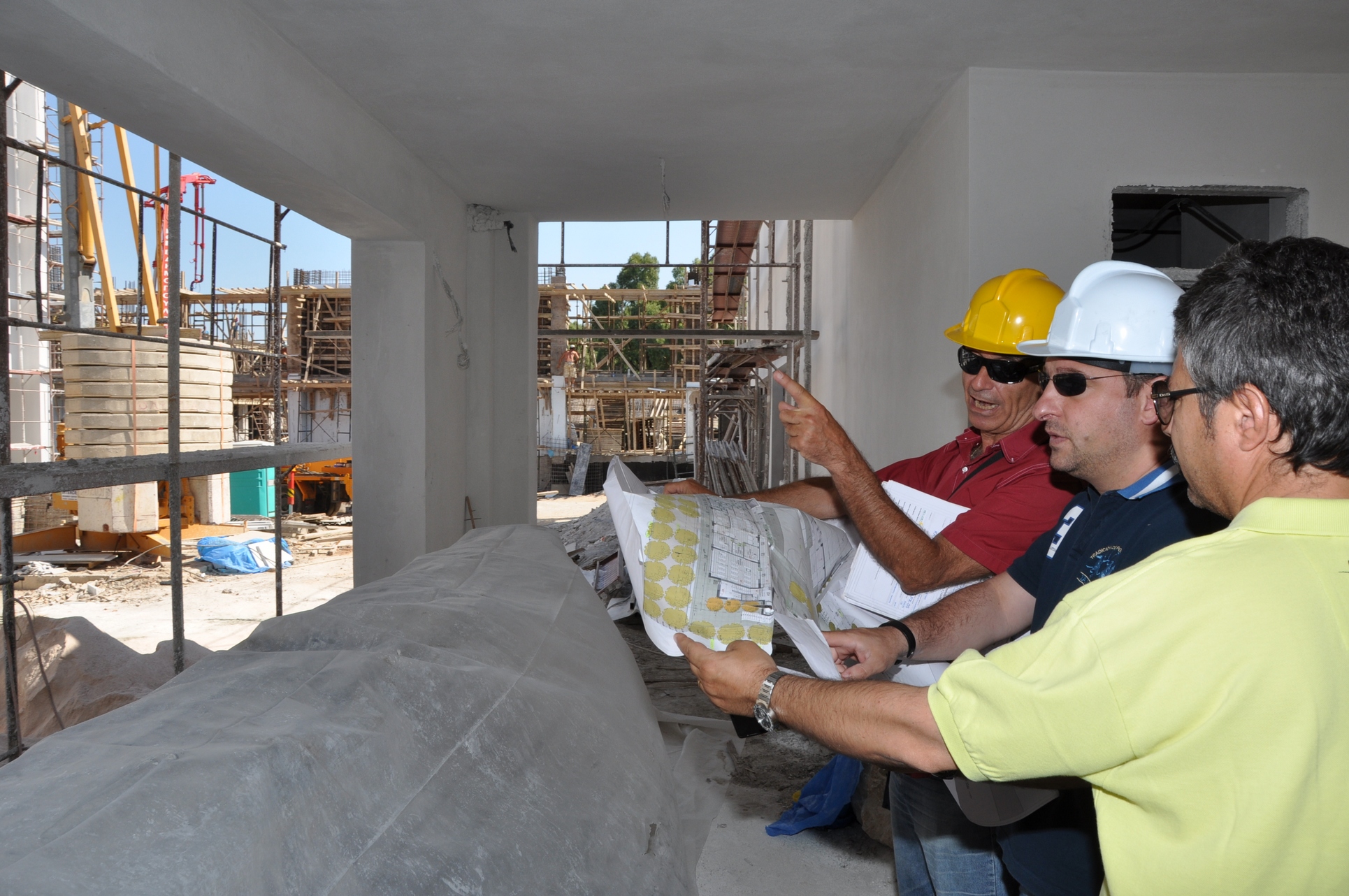 Erga 4: Ο Αντιδήμαρχος Τεχνικών Θεμάτων, Κωνσταντίνος Ζούμπος, με στελέχη της Τεχνικής Υπηρεσίας στο εργοτάξιο του Κλειστού Κολυμβητηρίου Βύρωνα.