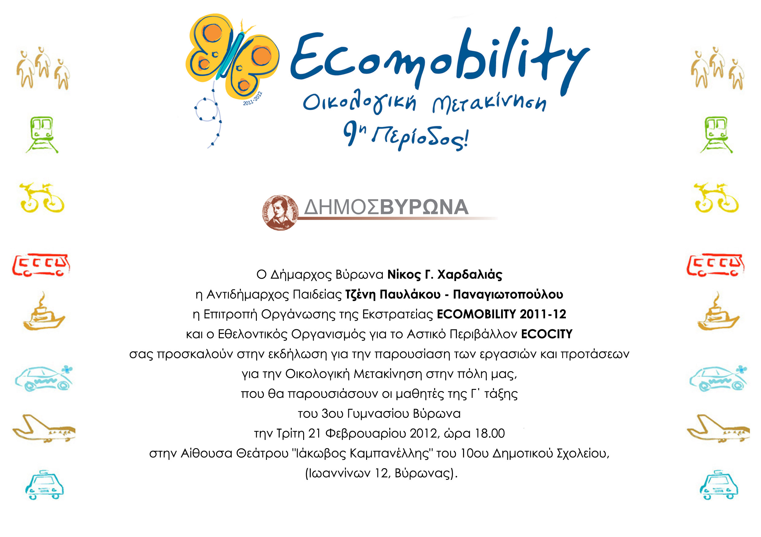 Παρουσίαση εργασίας μαθητών Γ' τάξης του 3ου Γυμνασίου Βύρωνα για την Οικολογική Μετακίνηση - 18:00 - 10ο Δημοτικό Σχολείο Βύρωνα