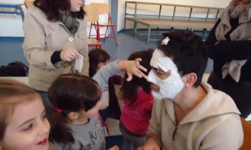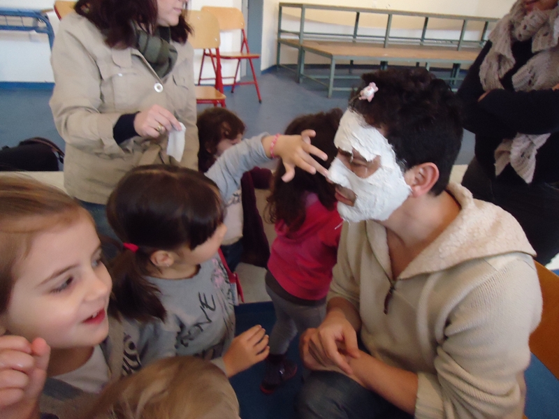 Οι μικροί μας φίλοι έμαθαν με τη βοήθεια του Χάρη Αρώνη και της Βενετίας Χατζηνικολάου, να κατασκευάζουν μια γύψινη μάσκα. Στο τέλος, μάλιστα, έβαλαν κυριολεκτικά την…πινελιά τους, αφού τελειοποίησαν τη θεατρική μάσκα με χρώματα ζωγραφικής. Το απόγευμα προβλήθηκε η ταινία «Μαλλιά Κουβάρια».