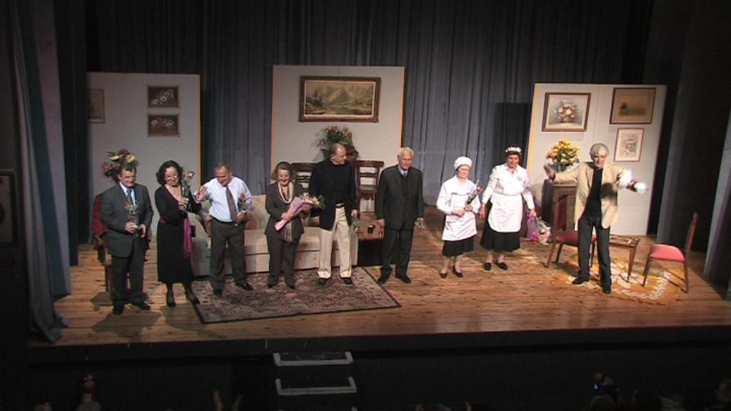 Οι συντελεστές της παράστασης και ο δάσκαλος του Θεατρικού Εργαστηρίου των ΚΑΠΗ, Γιάννης Ευαγγελίδης, απέσπασαν το θερμό χειροκρότημα του κοινού, στην κατάμεση αίθουσα του Δημοτικού Κινηματογράφου "Νέα Ελβετία", για την εξαιρετική τους δουλειά.