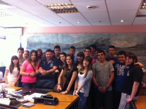 Ερευνητική εργασία με θέμα τον Βύρωνα και την ιστορική του εξέλιξη πραγματοποιεί ομάδα μαθητών της πρώτης τάξης του 1ου Λυκείου Βύρωνα. Στο πλαίσιο αυτό οι μαθητές επισκέφθηκαν την Τετάρτη το Δημαρχείο της πόλης και συναντήθηκαν με το Δήμαρχο Νίκο Χαρδαλιά.