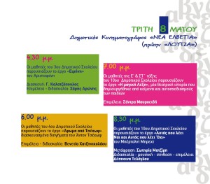 Υπενθυμίζεται ότι η εκδήλωση με τους παραδοσιακούς χορούς που επρόκειτο να παρουσιάσουν στις 8.30 το βράδυ οι μαθητές των 5ου και 11ου Δημοτικών σχολείων, ματαιώνεται.