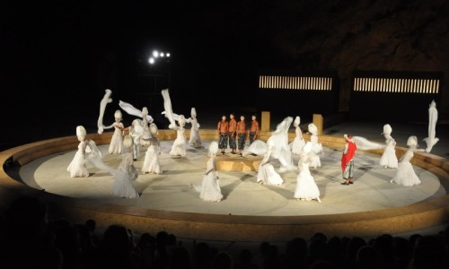 Με τη θεατρική παράσταση «Νεφέλες» του Αριστοφάνη από το Εθνικό Θέατρο συνεχίστηκαν την Τετάρτη οι εκδηλώσεις του Φεστιβάλ «Στη σκιά των Βράχων».
