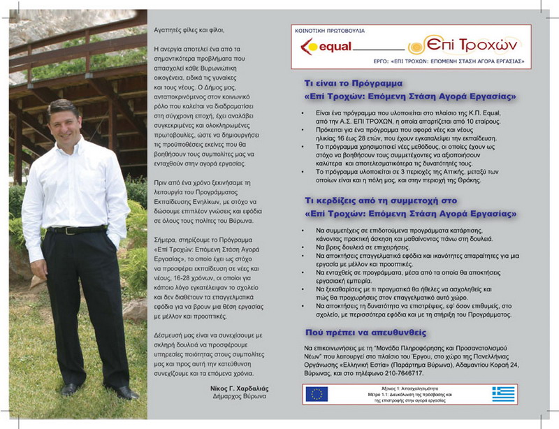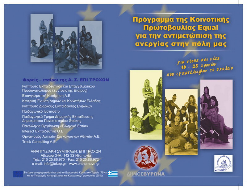 Δράση στο πλαίσιο της Κοινοτικής Πρωτοβουλίας EQUAL, άξονας 1 Απασχολησιμότητα, Μέτρο 1,1 Διευκόλυνση της πρόσβασης, το οποίο συγχρηματοδοτείται από το Ευρωπαϊκό Ταμείο (75%) και το Υπουργείο Απασχόλησης και Κοινωνικής Προστασίας (25%).