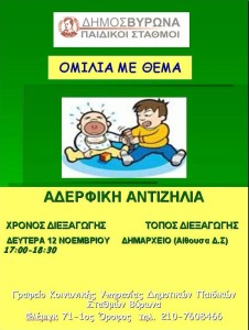 Η "Αδελφική Αντιζηλεία" είναι το θέμα που πραγματεύεται η δεύτερη ομιλία του Κύκλου Ομιλιών που διοργανώνουν οι Δημοτικοί Παιδικοί Σταθμοί της πόλης μας και απευθύνονται στους γονείς.