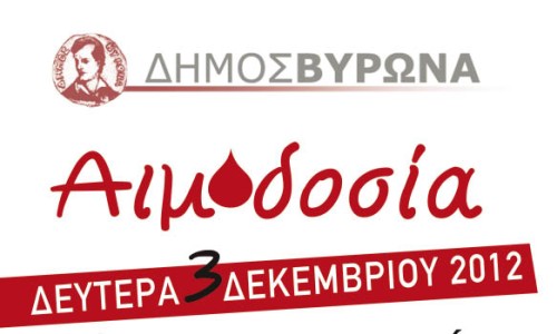 "Δώσε λίγο αίμα, σώζεις μια ζωή" είναι το σύνθημα της εθελοντικής αιμοδοσίας που διοργανώνει ο Δήμος Βύρωνα, σε συνεργασία με το Κέντρο Αιμοδοσίας του Νοσοκομείου «Σωτηρία», τη Δευτέρα 3 Δεκεμβρίου, από τις 9 το πρωί έως τη 1 το μεσημέρι, στο ΚΑΠΗ Μεταμόρφωσης (Αγ. Σοφίας και Καλλιπόλεως 54).