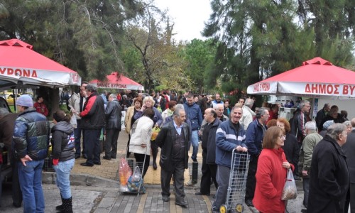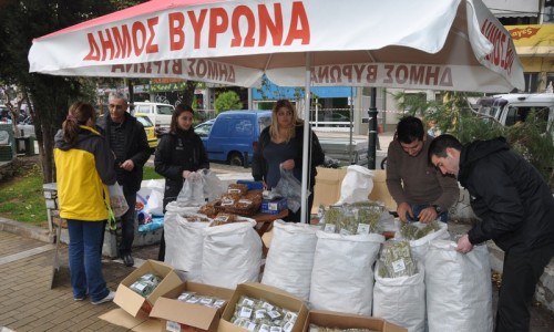Εντυπωσιακή ήταν η προσέλευση του κόσμου στη δεύτερη συνάντηση του «Χωριού Παραγωγών» του Δήμου Βύρωνα, στο οποίο 19 παραγωγοί-συνεταιρισμοί από όλη τη χώρα διέθεταν περισσότερα από 90 ελληνικά προϊόντα, χωρίς μεσάζοντες, απευθείας στους καταναλωτές.