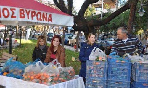 Παράλληλα, στο πλαίσιο της πρωτοβουλίας, οι παραγωγοί δώρισαν προϊόντα πρώτης ανάγκης στον Δήμο, ο οποίος με τη σειρά του τα διέθεσε στη Μητρόπολη Καισαριανής, Βύρωνα και Υμηττού για την ενίσχυση των συσσιτίων υπέρ των απόρων οικογενειών του Δήμου Βύρωνα. Συγκεκριμένα, οι παραγωγοί προσέφεραν 15 λίτρα λάδι, 18 κιλά ελιές, 10 κιλά γιαούρτι, 150 κιλά πατάτες, 60 κιλά φακές, 90 κιλά ρύζι, 70 κιλά αλεύρι, 40 κιλά ζυμαρικά, 12 κιλά μήλα, 10 κιλά μανταρίνια, 6 κιλά σταφίδες, 13,3 κιλά λουκάνικα και 300 αυγά, που παραδόθηκαν στα σπίτια γαλήνης των τοπικών ενοριών για την σίτιση των 1200 συμπολιτών μας.