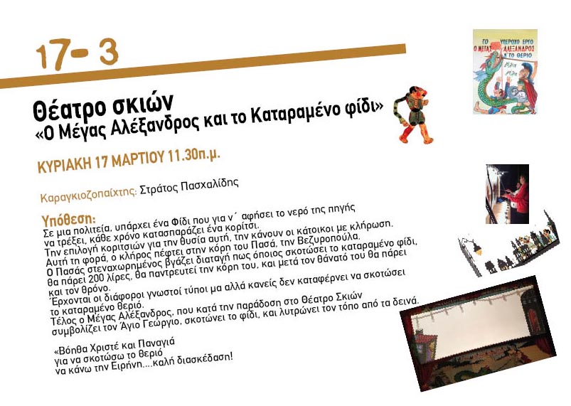 Μικρή Σκηνή: Θέατρο Σκιών Μέγας Αλέξανδρος και το Καταραμένο Φίδι - 11:30 - Δημοτικός Κινηματογράφος Νέα Ελβετία