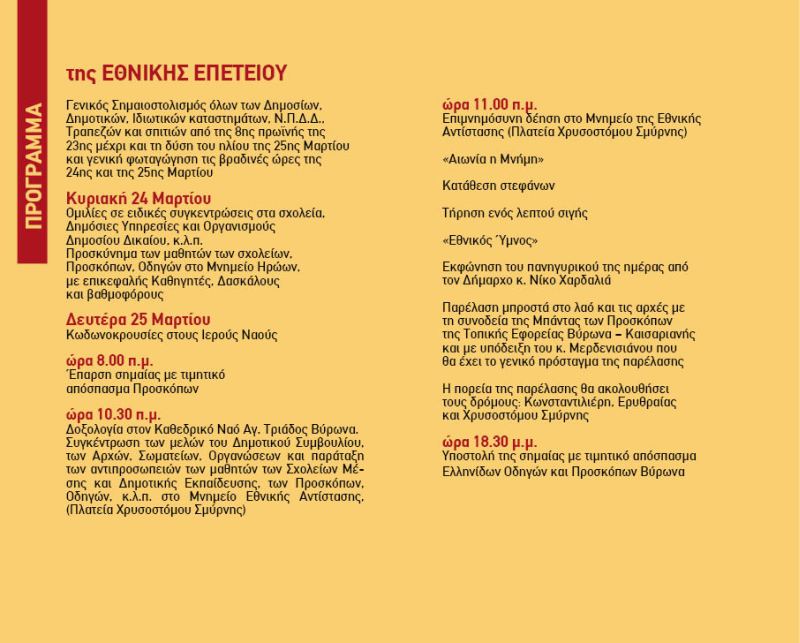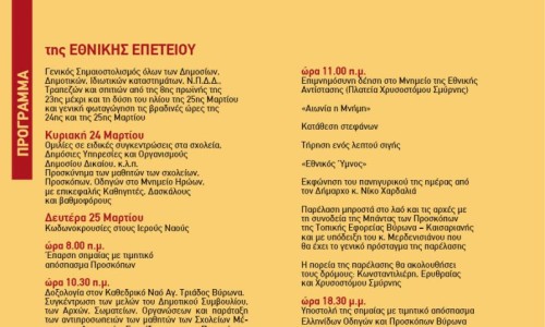 Πρόγραμμα εορταστικών εκδηλώσεων για την εθνική επέτειο της 25ης Μαρτίου