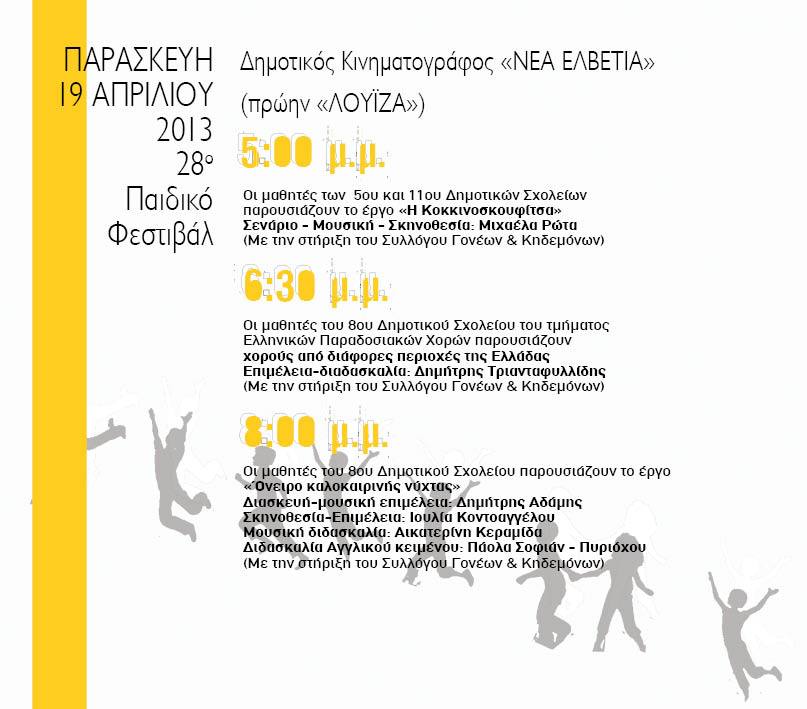 28ο Παιδικό Φεστιβάλ - Δημοτικός Κινηματογράφος Νέα Ελβετία