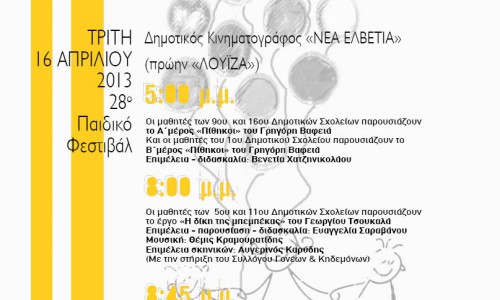 Με θέατρο συνεχίζεται σήμερα το απόγευμα, στον Δημοτικό Κινηματογράφο «Νέα Ελβετία», το 28ο Παιδικό Φεστιβάλ της πόλης μας.