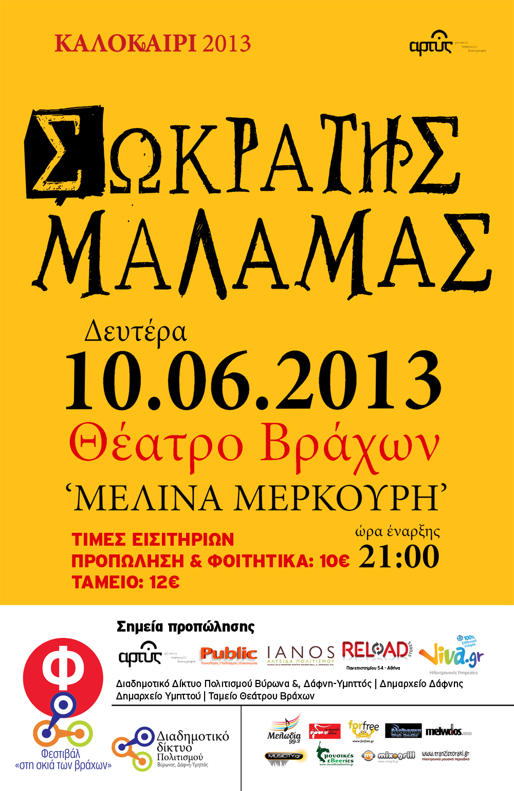 Με έναν από τους πιο αγαπημένους τραγουδοποιούς και ερμηνευτές ανοίγει η αυλαία του φετινού Φεστιβάλ «Στη σκιά των Βράχων», τη Δευτέρα 10 Ιουνίου. Ο Σωκράτης Μάλαμας, σημείο αναφοράς των καλοκαιρινών συναυλιών, ανεβαίνει στη σκηνή του Θεάτρου «Μελίνα Μερκούρη» και ανακατεύει δημιουργικά δικά του τραγούδια αλλά κι εκείνα που αγαπάει ο ίδιος, σε μια συναυλία εφ΄όλης της ύλης.