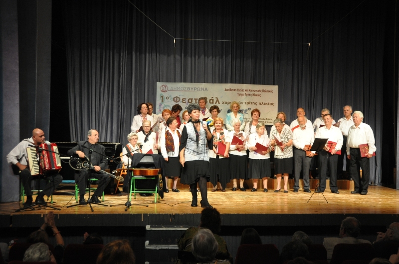 Υπό τον τίτλο «Πάμε σαν άλλοτε» και με τη συμμετοχή πέντε χορωδιών από τους Δήμους Βύρωνα, Δάφνης – Υμηττού, Καισαριανής, Κορυδαλλού και Παπάγου – Χολαργού, πραγματοποιήθηκε στις 6 Οκτωβρίου, το 1ο Φεστιβάλ Χορωδιών Τρίτης Ηλικίας του Δήμου Βύρωνα, στο Δημοτικό Κινηματογράφο «Νέα Ελβετία».