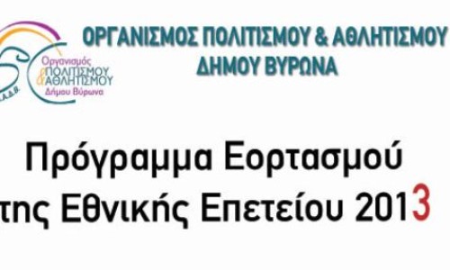 Στο πλαίσιο των εορταστικών εκδηλώσεων θα πραγματοποιηθεί δοξολογία στον Καθεδρικό Ναό Αγ. Τριάδος Βύρωνα, στις 10.30 το πρωί, παρουσία του Δημάρχου Βύρωνα Νίκου Χαρδαλιά, των μελών του Δημοτικού Συμβουλίου, εκπροσώπων των Αρχών, Σωματείων και Οργανώσεων, καθώς και αντιπροσωπειών των μαθητών, των προσκόπων, κ.ά.