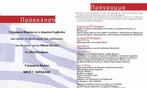 Πρόγραμμα εορταστικών εκδηλώσεων Εθνικής Επετείου 28ης Οκτωβρίου