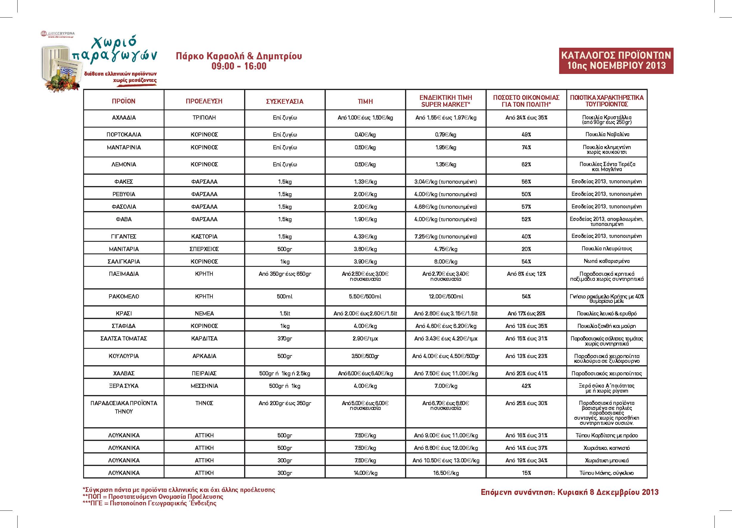 Η νέα συνάντηση του «Χωριού Παραγωγών» με τους καταναλωτές είναι την Κυριακή 10 Νοεμβρίου. Από τις 9 το πρωί μέχρι και τις 4 το απόγευμα, στο Πάρκο Καραολή και Δημητρίου, οι καταναλωτές μπορούν να προμηθευτούν πάνω από 200 προϊόντα από 27 παραγωγούς –συνεταιρισμούς.