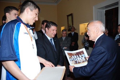 Τους Παγκόσμιους Πρωταθλητές-μαθητές του Αθλητικού Λυκείου Βύρωνα που κατέλαβαν την 1η θέση του Παγκοσμίου Σχολικού Πρωταθλήματος Μπάσκετ, που έγινε στο Πω της Γαλλίας, δέχθηκε στο Προεδρικό Μέγαρο, ο Πρόεδρος της Ελληνικής Δημοκρατίας Κάρολος Παπούλιας.