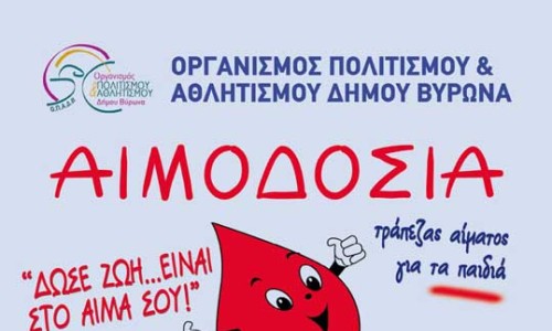 Παράλληλα, στο πλαίσιο του 29ου Παιδικού Φεστιβάλ, διοργανώνεται για τρίτη συνεχή χρονιά εθελοντική αιμοδοσία, με στόχο την ενίσχυση της Τράπεζας Αίματος για παιδιά. Η αιμοδοσία πραγματοποιείται την Τετάρτη 7 Μαΐου, 9-11 το πρωί, στο ΚΑΠΗ Μεταμόρφωσης, σε συνεργασία με το Κέντρο Αιμοδοσίας του Νοσοκομείου «Σωτηρία».