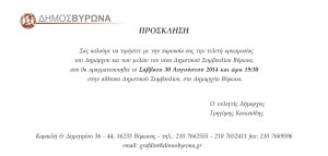 Το Σάββατο, 30 Αυγούστου 2014 και ώρα 19:30, θα πραγματοποιηθεί η τελετή ορκωμοσίας του Δημάρχου και του νέου Δημοτικού Συμβουλίου Βύρωνα.