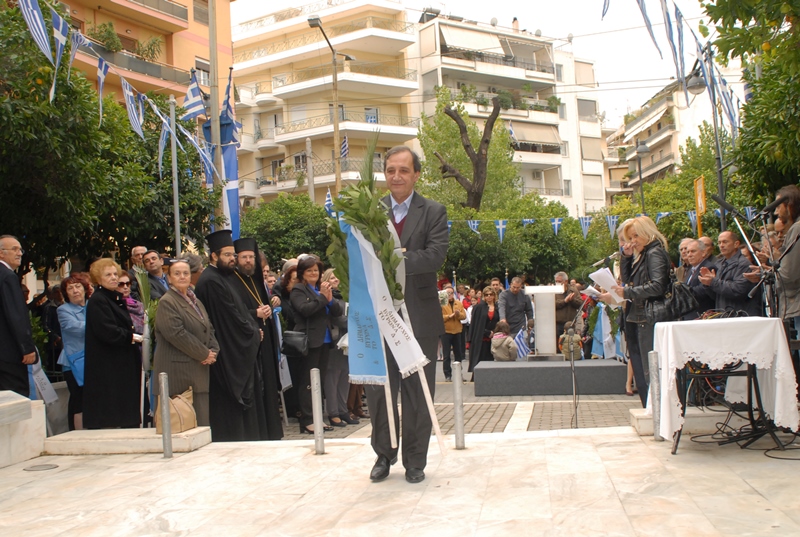 Ακολούθησε, στις 11π.μ., επιμνημόσυνη δέηση στο Μνημείο Εθνικής Αντίστασης στην Πλατεία Χρυσοστόμου Σμύρνης, όπου κατατέθηκαν στεφάνια, τηρήθηκε ενός λεπτού σιγή και ανακρούστηκε ο Εθνικός Ύμνος. Στην Επιμνημόσυνη Δέηση παρευρέθηκε σύσσωμο το Δημοτικό Συμβούλιο καθώς και μέλη οργανώσεων και φορέων του Δήμου.