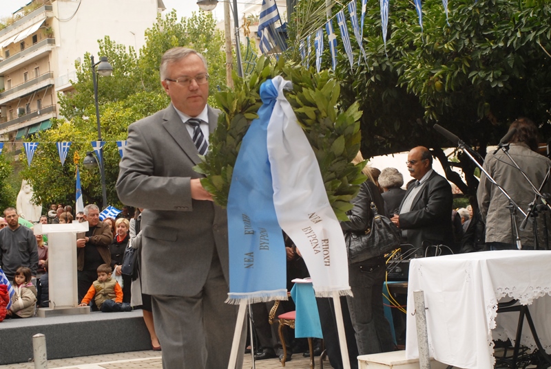 Την Τρίτη,28η Οκτωβρίου,οι εορταστικές εκδηλώσεις ξεκίνησαν στις 7.45 π.μ. με τις κωδωνοκρουσίες των Ιερών Ναών.