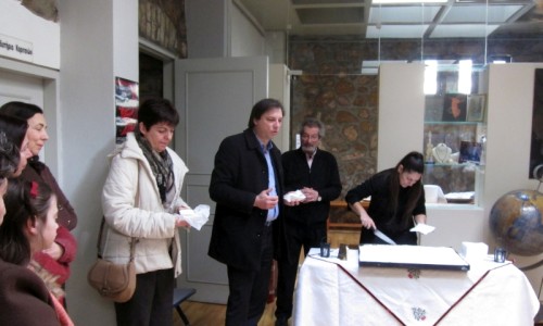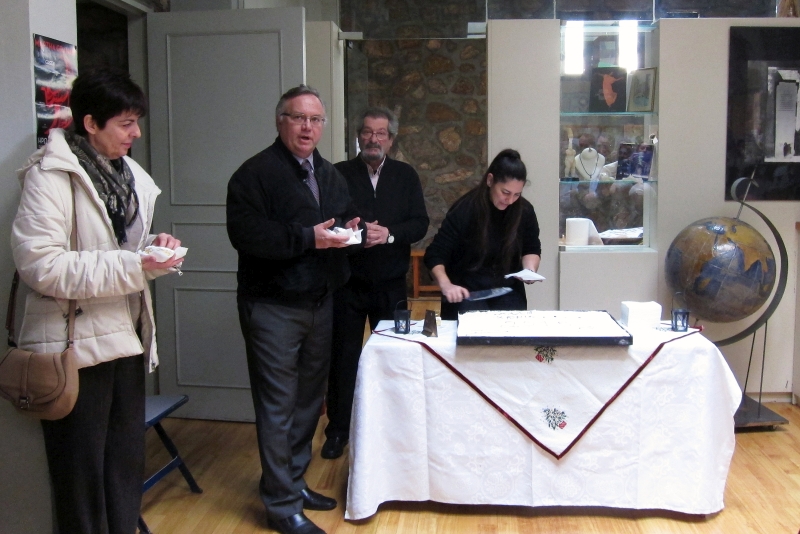Ο Πρόεδρος του Κέντρου, Γιώργος Αρβανίτης, μαζί με τα κομμάτια της πίτας πρόσφερε σε όλους τους καλεσμένους ευχές για μια χρονιά γεμάτη με τέχνη, έμπνευση και δημιουργικότητα.