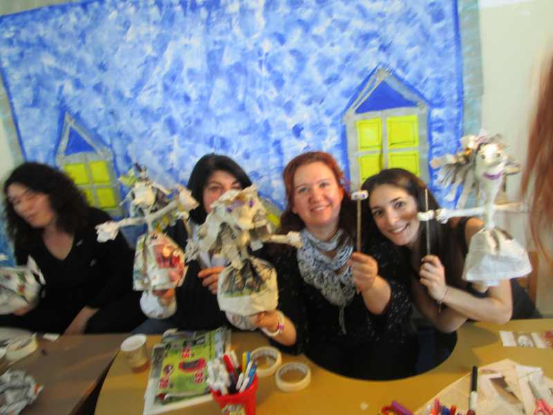 Το πρώτο μέρος της επιμόρφωσης αφορούσε στην εμψύχωση, την κίνηση και την έκφραση της κούκλας και το δεύτερο αφορούσε στην κατασκευή κούκλας από απλά και ανακυκλώσιμα υλικά.