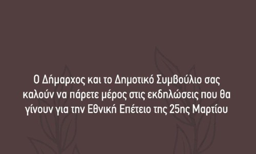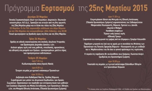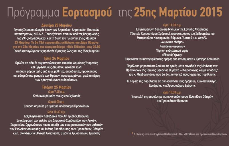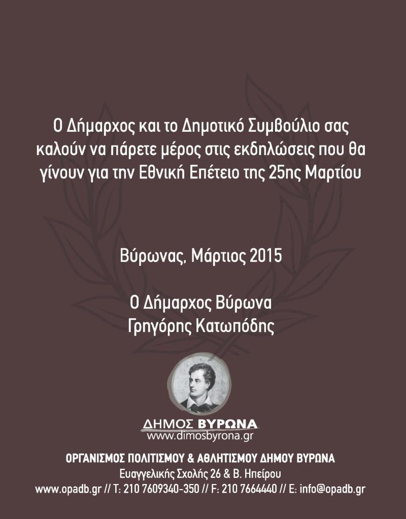 Πρόγραμμα Εορτασμού της 25ης Μαρτίου του Δήμου Βύρωνα