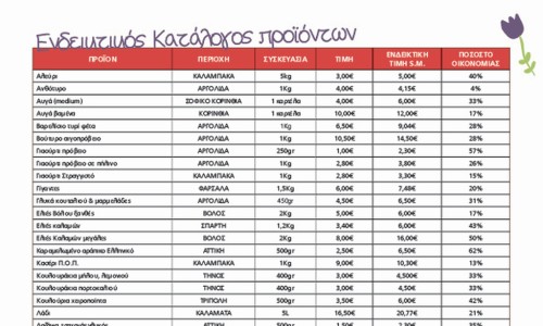 Παραγωγοί από όλη τη χώρα πρόκειται να διαθέσουν τα εξής προϊόντα: Αλεύρι, Αυγά, Βούτυρο, Γιαούρτι, Γίγαντες, Γλυκά κουταλιού, Μαρμελάδες, Ελιές, Καραμελωμένο Αράπικο, Κουλουράκια Μήλου, Λεμονιού & Πορτοκαλιού, Κουλούρια χειροποίητα, Λάδι, Λαζάνια, Τραχανάς γλυκός, Λεμόνια, Τομάτες, Λουκάνικα, Μανιτάρια, Μέλι, Ξύδι, Οίνος, Όσπρια, Παραδοσιακές πίτες, Πατάτες, Πλιγούρι με λιαστή τομάτα, Πορτοκάλια, Ρίγανη, Ρύζι, Σκόρδα, Σπαγγέτι, Σταφίδα, Σύκα, Ταχίνι και Ταχίνι ολικής, Τσίπουρο Παρνασσού, Τυριά, Φιστίκι ωμό αράπικο, Χαλβάς, Ψητή μελιτζάνα με λιαστή τομάτα κ.α..