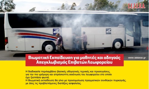 Βιωματική Εκπαίδευση μαθητών και οδηγών στην διαδικασία Απεγκλωβισμού Επιβατών καιγόμενου Λεωφορείου