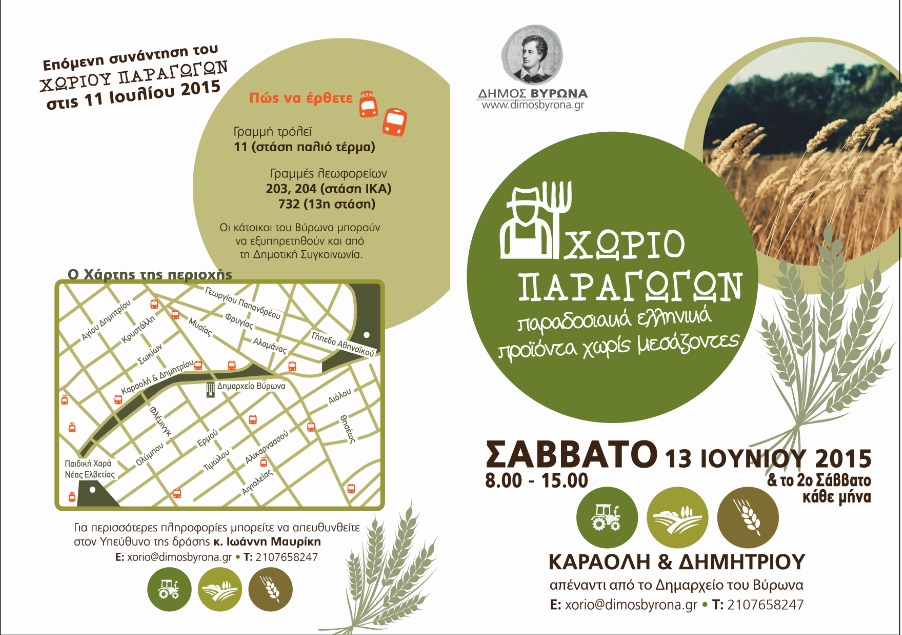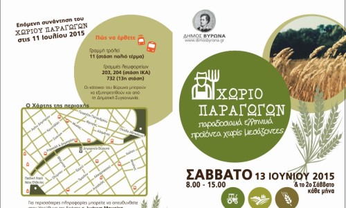 Η κοινωνική δράση «Χωριό Παραγωγών», που βασίζεται στην ανάγκη των κατοίκων της πόλης μας για φθηνό και ποιοτικό προϊόν, θα πραγματοποιηθεί το Σάββατο 13 Ιουνίου στο Πάρκο της Καραολή & Δημητρίου απέναντι από το Δημαρχείο με ώρες λειτουργίας 08.00 – 15.00.