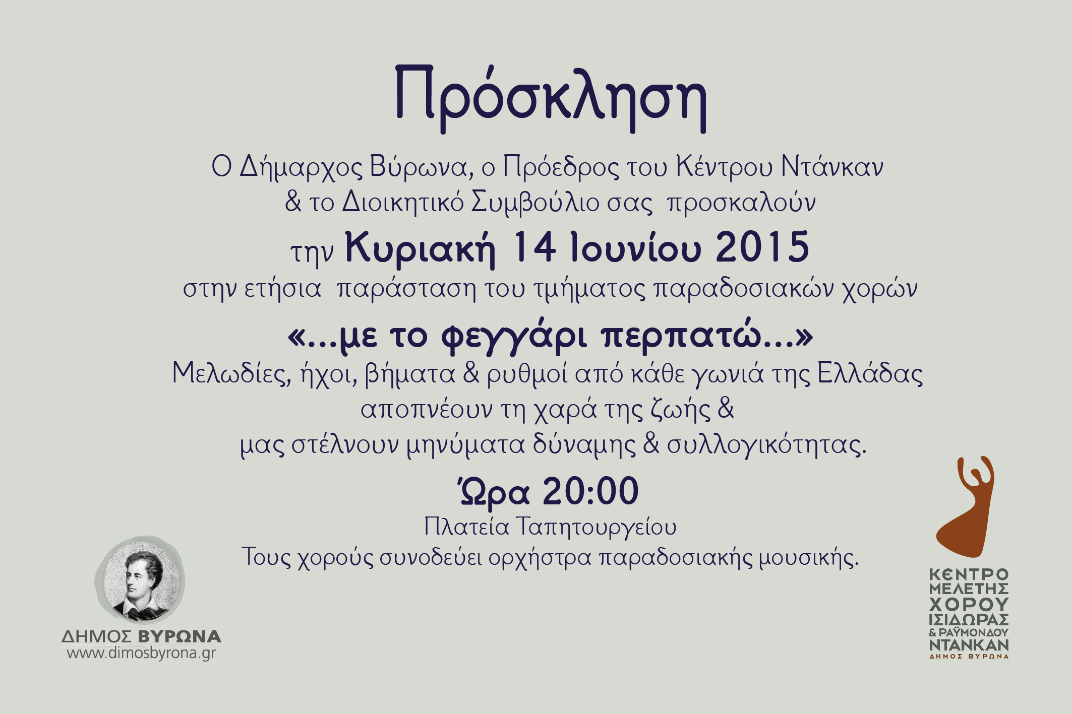 Ο Δήμαρχος Βύρωνα, ο Πρόεδρος του Κέντρου Ντάνκαν και το Διοικητικό Συμβούλιο σας προσκαλούν