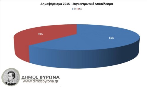 Στον Δήμο Βύρωνα, το ΟΧΙ συγκέντρωσε ποσοστό 60,94% (17.293), ενώ το ΝΑΙ 39,06% (11.085).